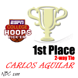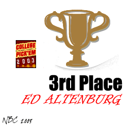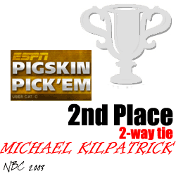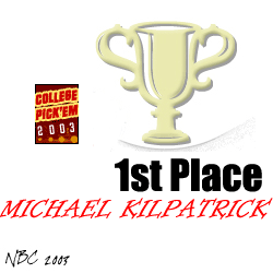 | 5 | Michael Kilpatrick | Baseball Challenge 2 College Pickem Pigskin Pickem | UBER 2003 Cat. D ESPY Challenge Fishing Challenge | 41.0 | |