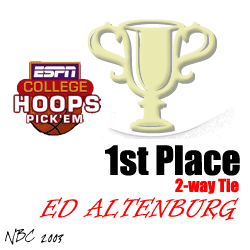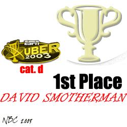 | 1 | Ed Altenburg | UBER 2003 Cat. B NBA Virtual GM 1 Mens Tournament Challenge Baseball Challenge 2 College Pickem | UBER 2003 Cat. C College Hoops Pickem Womens VGM IRL Challenge | Citgo Pick6 NBA Triple Double: Playoffs DIGITURF Pick6 | 111.5 |