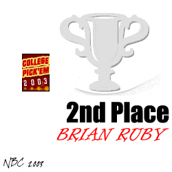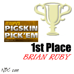 | 16 | Brian Ruby | College Pickem Pigskin Pickem | 17.5 | ||