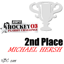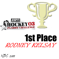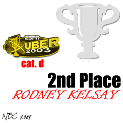 | 2 | Rodney Kelsay | NBA Virtual GM 2 | UBER 2003 Cat. C College Hoops Pickem FHL Playoff Challenge VGM: Postseason Majors Golf Challenge (British Open) Womens VGM College Bowl Pickem | UBER 2003 Cat. D NFL Draft Fishing Challenge | 81.5 |