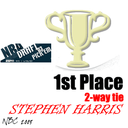 | 10 | Duane Grassbaugh | Stockcar Challenge | VGM: Postseason | Citgo Pick6 ESPY Challenge | 25.5 |