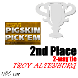 | 12 | Troy Altenburg | Pigskin Pickem | Womens Tournament Challenge | NFL Draft NBA Draft NBA Triple Double: Playoffs ESPY Challenge | 23.5 |